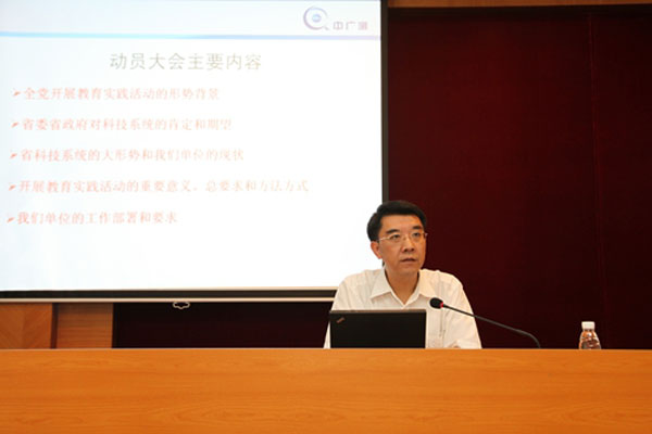 继我中心组织副处级以上党员参加省科技厅系统党的群众路线教育实践活动动员大会后,7月10日下午,中心党委又组织全体在岗党员近100人召开动员会。会议由中心副主任林展江同志主持,党委书记郑健达同志传达省委及省科技厅相关会议精神,并对中广测开展教育实践活动进行动员和部署。
